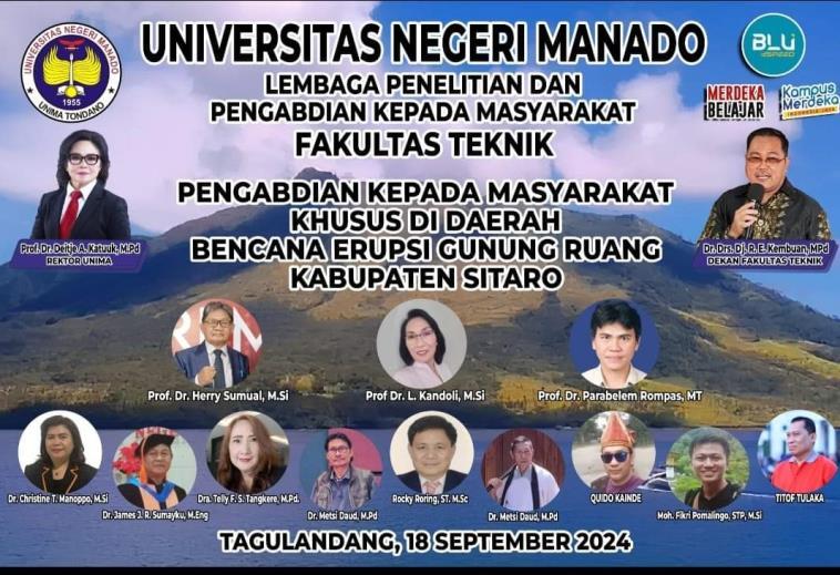 Kegiatan ini diinisiasi oleh Universitas Negeri Manado (Unima) melalui Lembaga Penelitian dan Pengabdian kepada Masyarakat (LPPM) selama dua hari, yang bertujuan untuk melaksanakan tugas-tugas Tri Dharma Perguruan Tinggi.