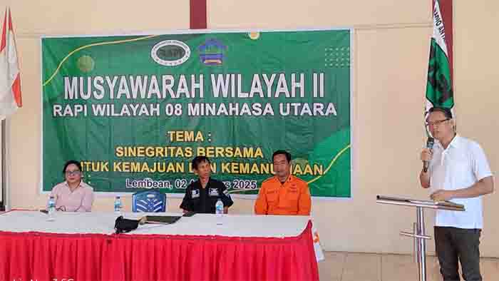 MINUT– Bupati Minahasa Utara (Minut) Joune Ganda yang diwakili Kepala Dinas Komunikasi dan Informatika serta Persandian Minut Robby Parengkuan membuka Musyawarah Wilayah (Muswil) II Radio Antar Penduduk Indonesia (RAPI) Wilayah 08 Minahasa Utara di Balai Pelaksanaan Umum Wanua Lembean, Sabtu (2/8/2025).