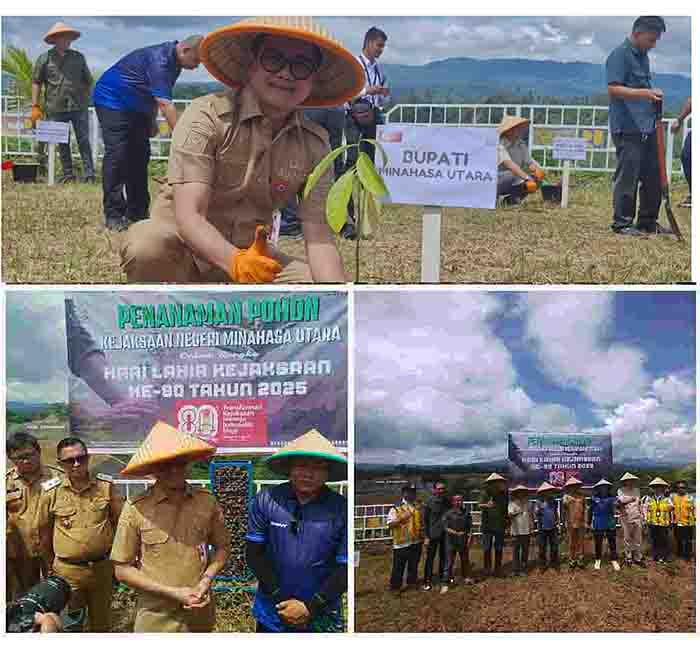MINUT – Kejaksaan Negeri (Kejari) Kabupaten Minahasa Utara (Minut) dalam rangka menyambut Hari Lahir Kejaksaan Ke-80 tahun, menggelar kegiatan penanaman pohon di sekitaran Bendungan Kuwil-Kawangkoan, Desa Kawangkoan Kecamatan Kalawat Kabupaten Minahasa Utara, selasa (19/8/2025).