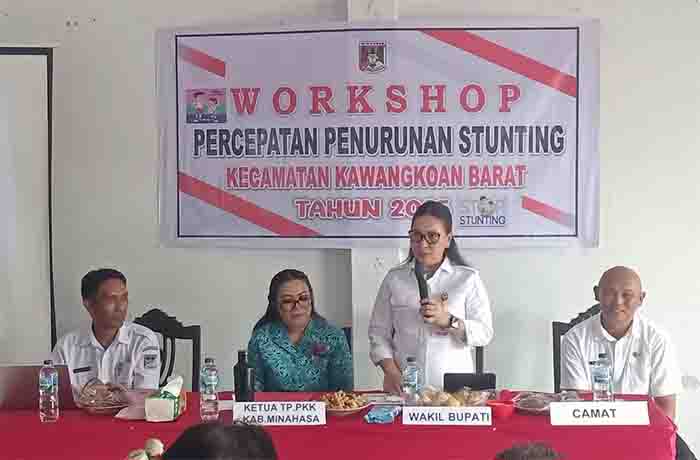 Ketua TP-PKK Kabupaten Minahasa, Ny. Martina Watok Dondokambey-Lengkong, juga memberikan materi dalam workshop tersebut. Ia menekankan pentingnya pemberian asupan gizi seimbang, pemenuhan suplemen, serta akses sanitasi yang layak dalam menurunkan angka stunting.