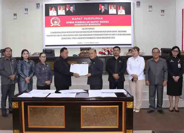 MINAHASA – Pemerintah Kabupaten Minahasa dan Dewan Perwakilan Rakyat Daerah (DPRD) Minahasa secara resmi menyepakati perubahan Kebijakan Umum Anggaran (KUA) dan Prioritas dan Plafon Anggaran Sementara (PPAS) untuk tahun anggaran 2025. Penandatanganan nota kesepakatan ini dilakukan dalam Rapat Paripurna DPRD Minahasa pada Kamis (11/9/2025).