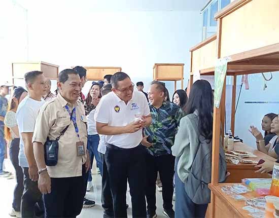 Dukungan terhadap program riset dan kewirausahaan mahasiswa tampak jelas dari kehadiran jajaran pimpinan universitas. Rektor Unima, Dr. Joseph P. Kambey, SE., Ak., MBA., bersama Sekretaris Senat Unima, Prof. Dr. Beatrix Jetje Podung, M.Kes., AIFO., Wakil Rektor Bidang Akademik, Prof. Dr. Mister Gidion Maru, M.Hum., Wakil Rektor Bidang Perencanaan, Keuangan, dan Umum, Prof. Dr. Donal Matheos Ratu, M.Hum., Wakil Rektor Bidang Kemahasiswaan dan Kerja Sama, Lenny Leorina Evinita, B.Sc., MA., MBA., Ph.D., secara langsung mendampingi Kepala LPPM Unima, Dr. Armstrong F. Sompotan, M.Si., Sekretaris Rektor Unima, Dr. Marcia Watulingas, M.Pd, serta Kepala Humas Unima, Drs. Titof Tulaka, SH., MAP., untuk meninjau proses MONEV dan stan wirausaha.