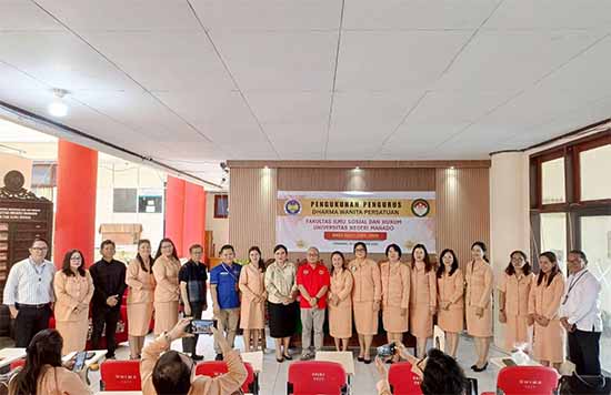 MINAHASA – Ketua Dharma Wanita Persatuan (DWP) Universitas Negeri Manado (Unima), Jeannet Ellen Kambey Kumaat, resmi mengukuhkan Pengurus Dharma Wanita Persatuan Fakultas Ilmu Sosial dan Hukum (FISH) Unima masa bakti 2025–2029.