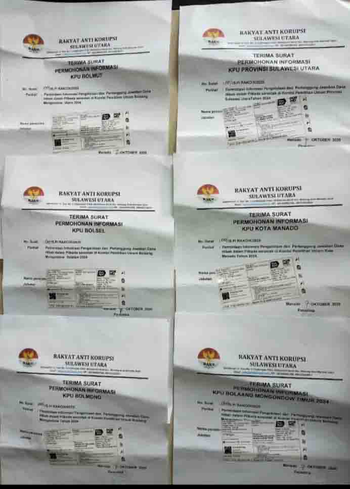 MANADO — Lembaga Swadaya Masyarakat Rakyat Anti Korupsi (RAKO) secara resmi melayangkan surat permintaan informasi kepada seluruh Komisi Pemilihan Umum (KPU) Kabupaten/Kota se-Sulawesi Utara, guna meminta keterbukaan terkait pengelolaan dana hibah Pilkada Serentak 2024.