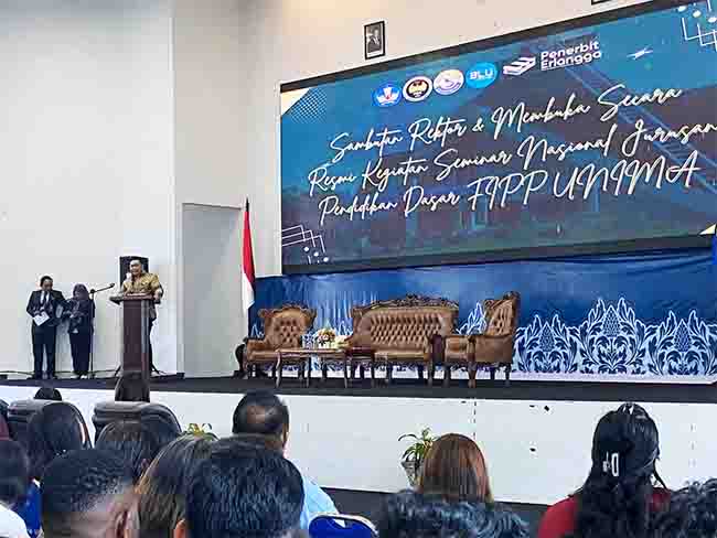 Wakil Rektor Bidang Akademik Unima, Prof. Dr. Mister Gidion Maru, M.Hum., dalam sambutannya menyampaikan apresiasi atas terselenggaranya seminar nasional ini sebagai wujud nyata kolaborasi antara akademisi dan pemerintah dalam memperkuat kualitas pembelajaran di jenjang pendidikan dasar.