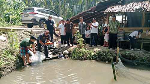 Dalam acara tersebut kakanwil, menaburkan sekitar 1000 beni bibit ikan air tawar ,dan juga beberapa induk ikan mas.