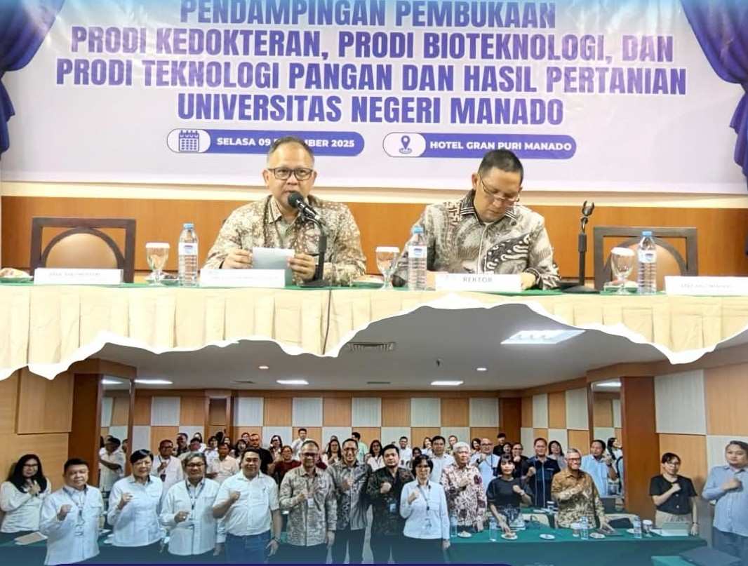 MANADO – Universitas Negeri Manado (Unima) mendapat pendampingan langsung dari Direktur Jenderal Pendidikan Tinggi, Riset, dan Teknologi, Prof. Khairul Munadi, dalam rangka mematangkan persiapan pembukaan empat program studi strategis, yakni Pendidikan Kedokteran, Bioteknologi, Teknologi Pangan, serta Hasil Pertanian. Pendampingan ini menjadi bagian dari penguatan kelembagaan Unima menuju universitas berdaya saing nasional dan regional.