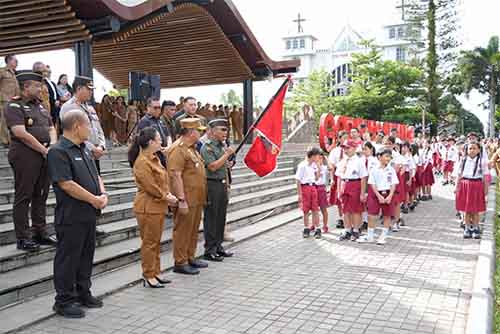 “Bela negara adalah tugas kita semua, dimulai dari lingkungan terdekat,” ucap Bupati Robby, kalimat yang menggema di tengah lapangan dan seakan menjadi pesan bersama pagi itu.