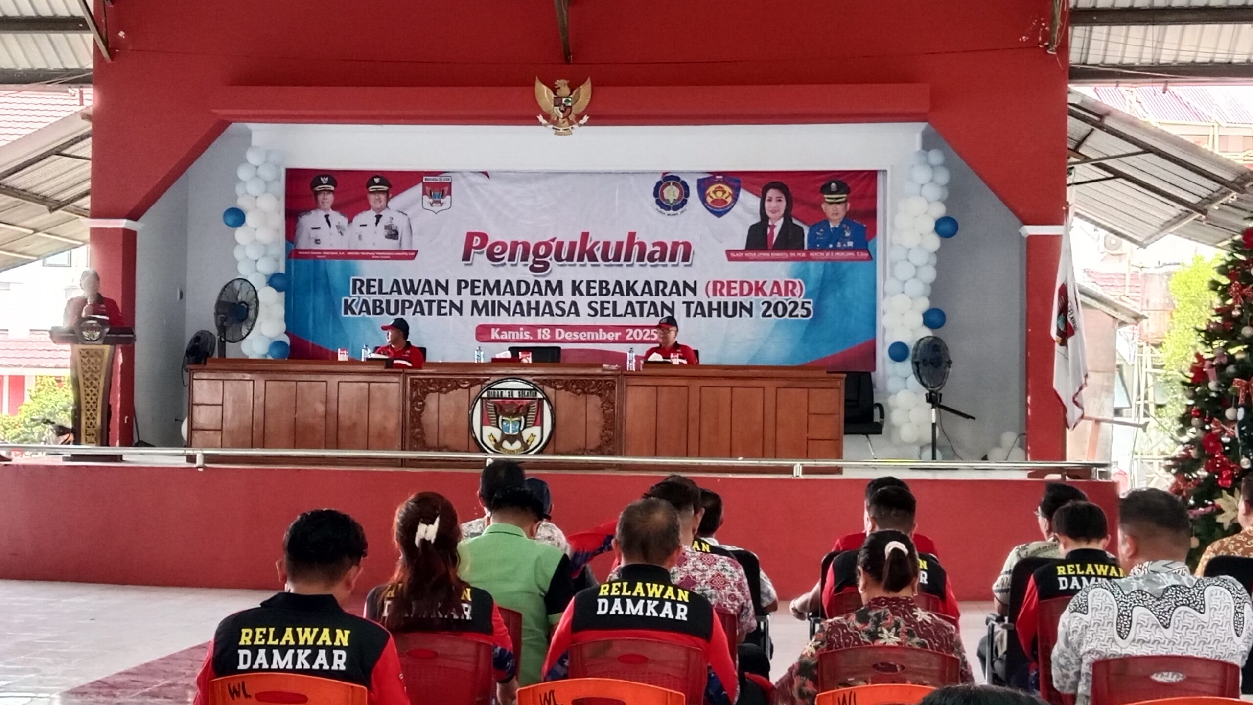 Minsel, e-karyamedia.com – Pemerintah Kabupaten Minahasa Selatan secara resmi melaksanakan pengukuhan Relawan Pemadam Kebakaran (Redkar) Kabupaten Minahasa Selatan Tahun 2025. Kegiatan ini dikukuhkan langsung oleh Bupati Minahasa Selatan, Franky Donny Wongkar.