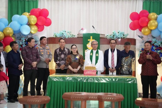 “Gereja tidak hanya menjadi pusat pembinaan rohani, tetapi juga memiliki peran penting dalam memperkuat persatuan, kebersamaan, serta nilai-nilai luhur dalam kehidupan bermasyarakat,” ujar Wakil Bupati.
