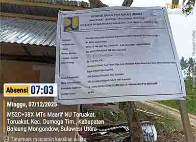 BOLMONG — Proyek rehabilitasi dan renovasi Madrasah Tsanawiyah (MTs) LP Ma’arif NU Toruakat, Kecamatan Dumoga…